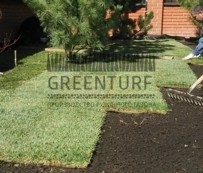 5. Привозим газонную траву оптом, качественно раскатываем рулоны.